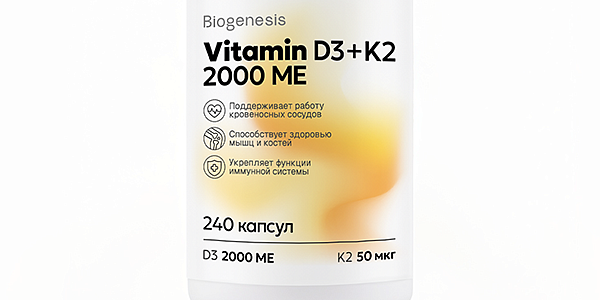 Biogenesis Витамин D3+K2 2000МЕ/50 мкг, капсулы 240 шт в наличии. Узнайте, как купить товар с бесплатной доставкой в Липецк, Елец, Грязи, Лебедянь, Данков, Усмань и другие населенные пункты Липецкой области на странице «