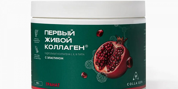 Уникальный, легкоусваиваемый, пищевой bio-комплекс COLLA GEN ГРАНАТ доставляет жизненно важные микроэлементы в клетки и тем самым запускает процессы восстановления и оздоровления организма. Имеет улучшенную формулу коллагена с эластином для гибких суставов, эластичных связок, густых волос, упругой кожи, крепких ногтей.Запатентованный производственный процесс, а также качество и свойства продукта подтверждены клиническими испытаниями, международными сертификатами ISO и HACCP. Без добавления сахара, ГМО, красителей, глютена. 100% натуральный сок вишни в составе. Подходит всем членам семьи – детям, подросткам, взрослым, пожилым. Абсолютно безопасен для особых категорий людей – аллергиков, беременных и кормящих. ЖИВОЙ КОЛЛАГЕН – это выбор более 200 российских звезд, авторитетных врачей и спортсменов! Относится к животному типу происхождения.