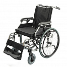 - Адаптивность под пользователя: ширина сиденья 46 см, глубина — 42-50 см, а съемные подлокотники с регулировкой по высоте позволяют идеально подогнать коляску под анатомические особенности и потребности пользователя.