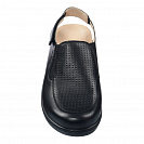 Верх выполнен из натуральной гладкой кожи чёрного цвета, подкладка, также кожаная, обладает мелкой перфорацией, обеспечивающей непрерывный влаго- и теплообмен при ходьбе. Несъёмная ортопедическая стелька с покрытием из натуральной кожи дополнительно амортизирует каждый шаг, оберегает от развития деформационных процессов в ногах.